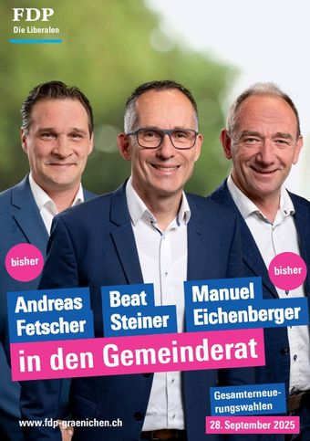 Am 28.09.2025 stehen erneut Wahlen für die Gemeinde an. Gesamterneuerungswahlen! Und die FDP Gränichen stellt in fast allen Kommissionen ihre Mitglieder zur Verfügung, ist engangiert und will mitgestalten - für SIE, für die Bürgerinnen und Bürger von Gränichen.